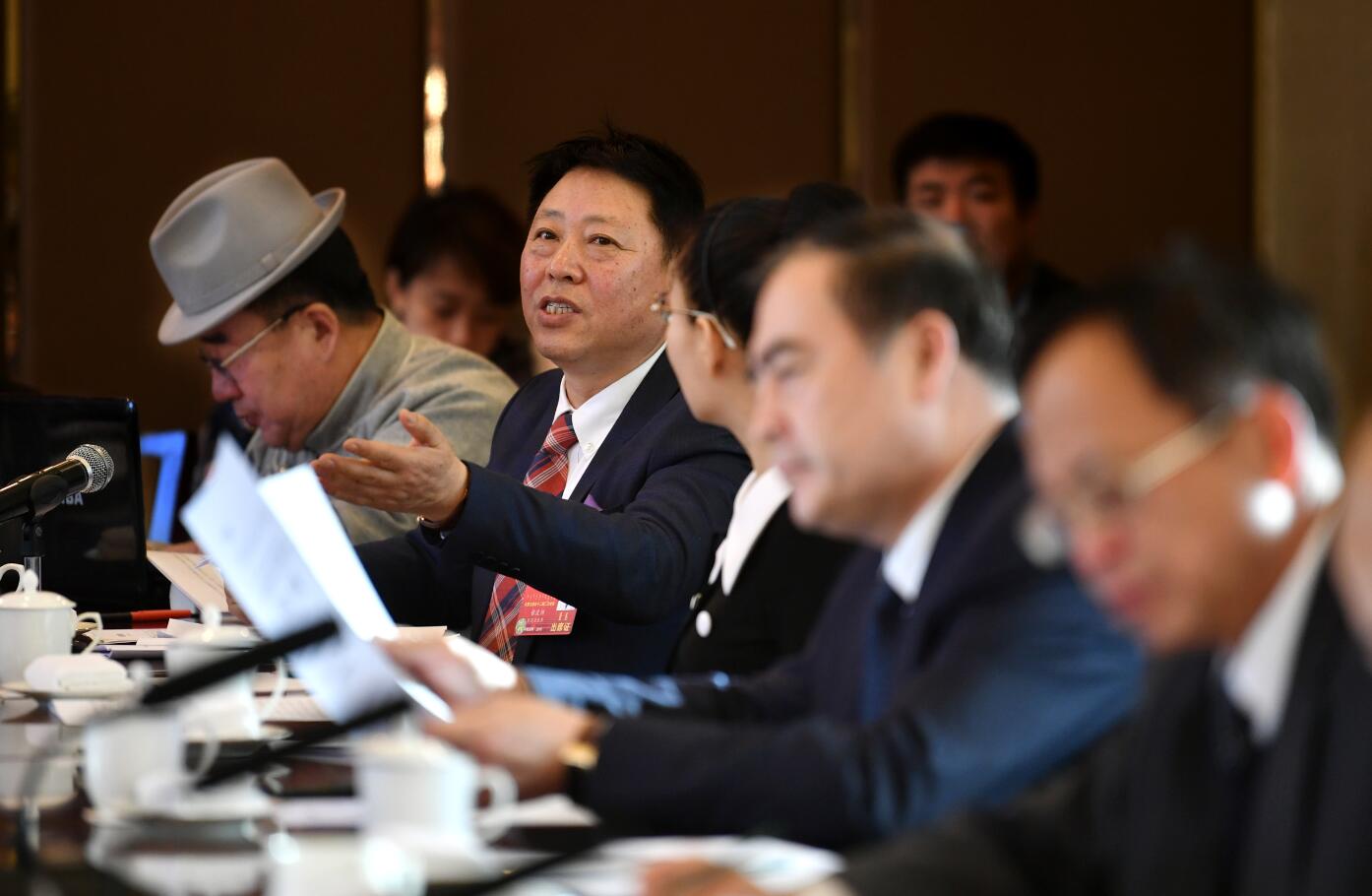 来自医疗卫生界别的委员张波洲(左二)呼吁政府部门加大扶持民营医疗机构的力度。内蒙古日报社融媒体记者 马建荃 摄